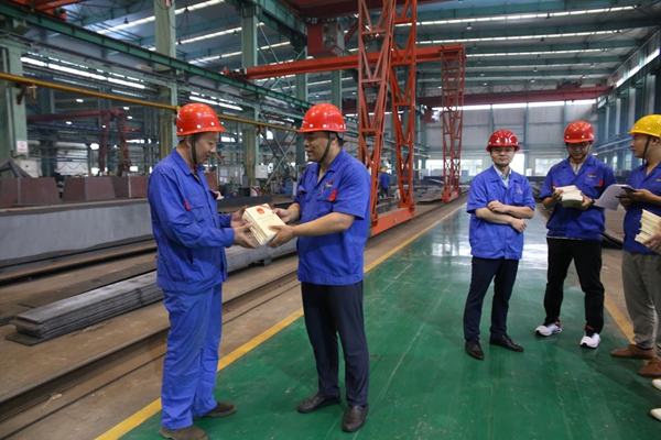 西安重装陕西中环公司为一线职工发放新《安全生产法》资料。 侯永建 摄